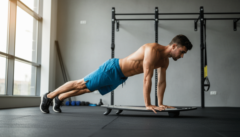 - Dica avançada: Execute em superfície instável, como um disco balance board, para desafiar ainda mais a estabilidade.