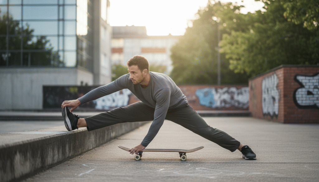 Antes de iniciar o treino de flexibilidade skatista treino, o aquecimento dinâmico é crucial para preparar os músculos, articulações e tendões para as exigências específicas da modalidade. Um aquecimento inadequado não só diminui a efetividade do alongamento como também eleva o risco de lesões.