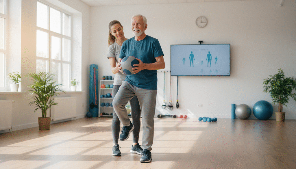 - Por que funciona: Exercícios resistidos promovem hipertrofia muscular e melhora da coordenação neuromuscular, fundamentais para a autonomia.