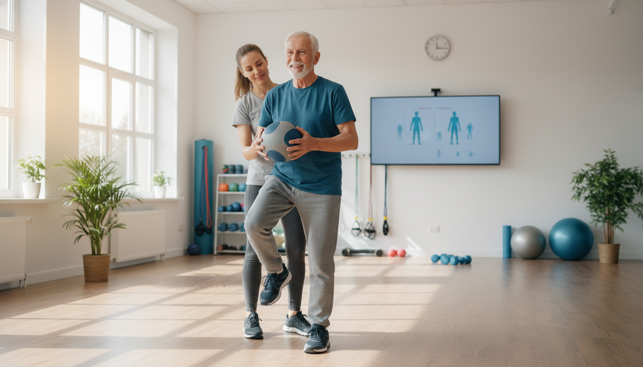 O segredo está em fortalecer a musculatura das pernas e core e melhorar o equilíbrio com exercícios específicos. Também mantenha o ambiente seguro, sem obstáculos e apoio adequado.
